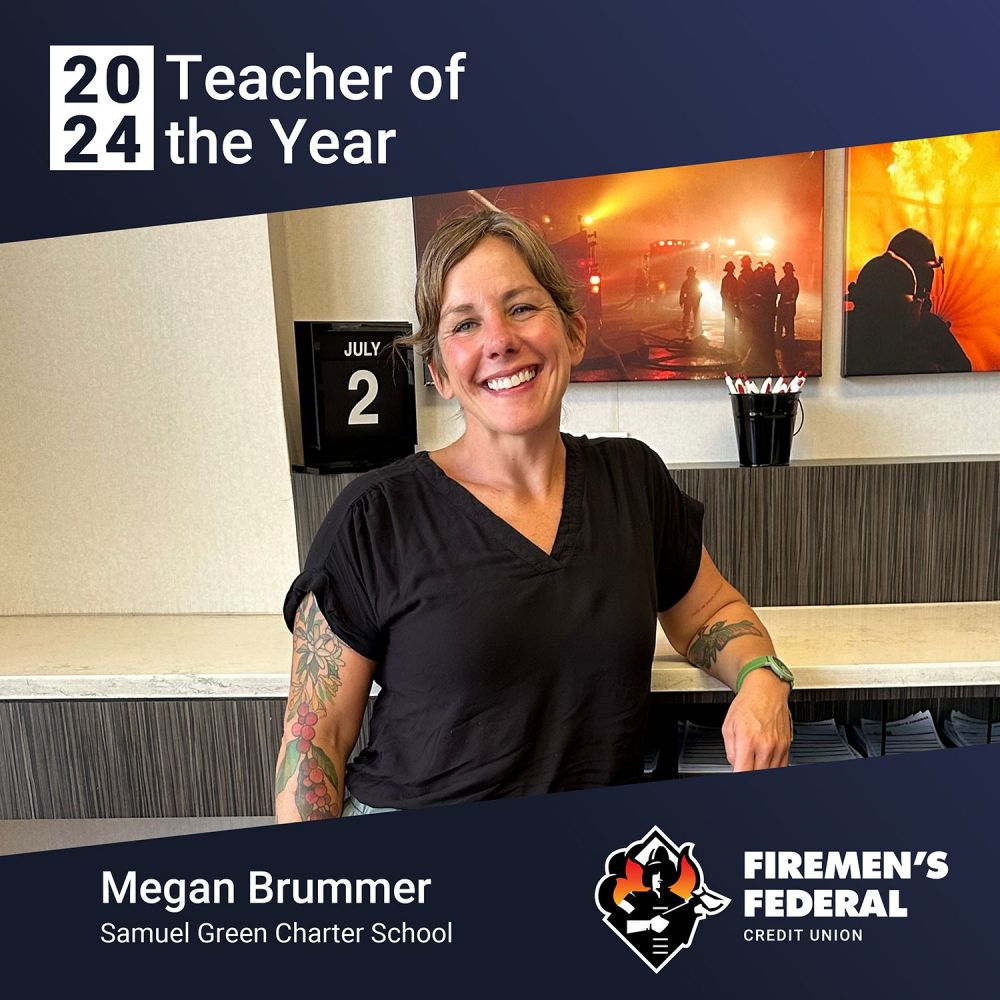 “We are thrilled to recognize Megan as our first Teacher of the Year,” said Judy DeLucca, CEO of Firemen’s Federal Credit Union. “Her hard work and dedication to her students and community are truly inspiring. With educators like Megan, we know the future is in good hands.”